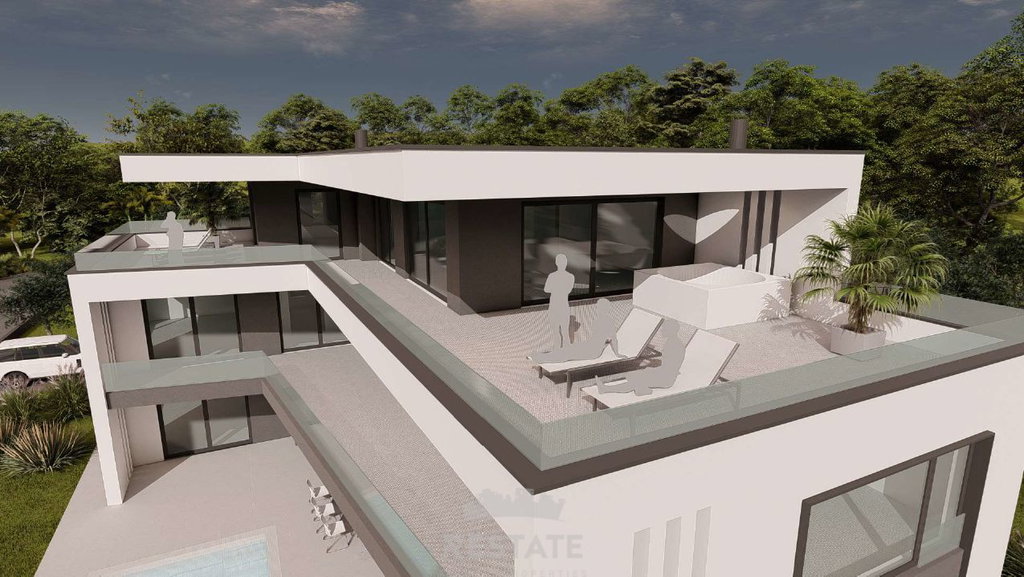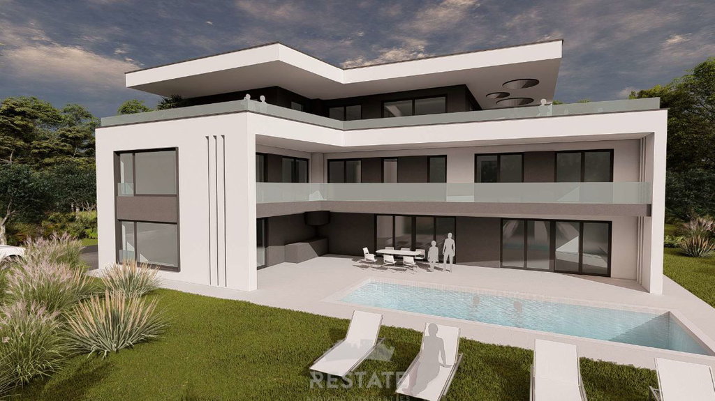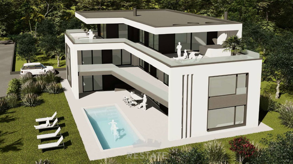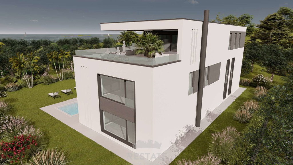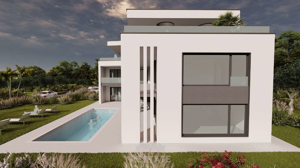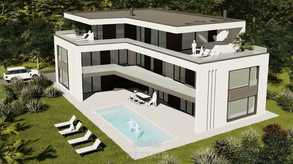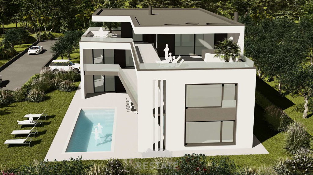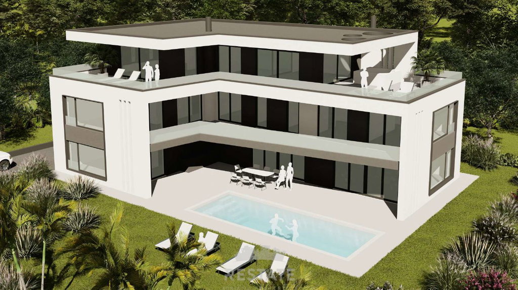 We are selling a beautiful, flat rectangular plot for the construction of a villa (conceptual project attached) + swimming pool.