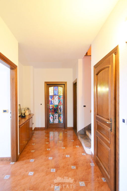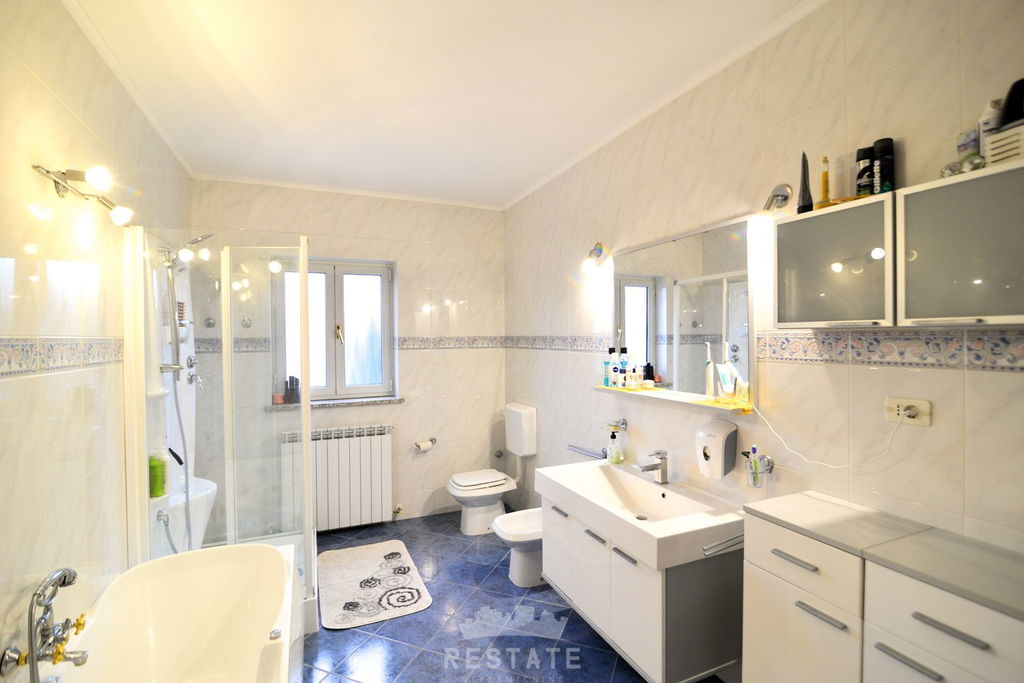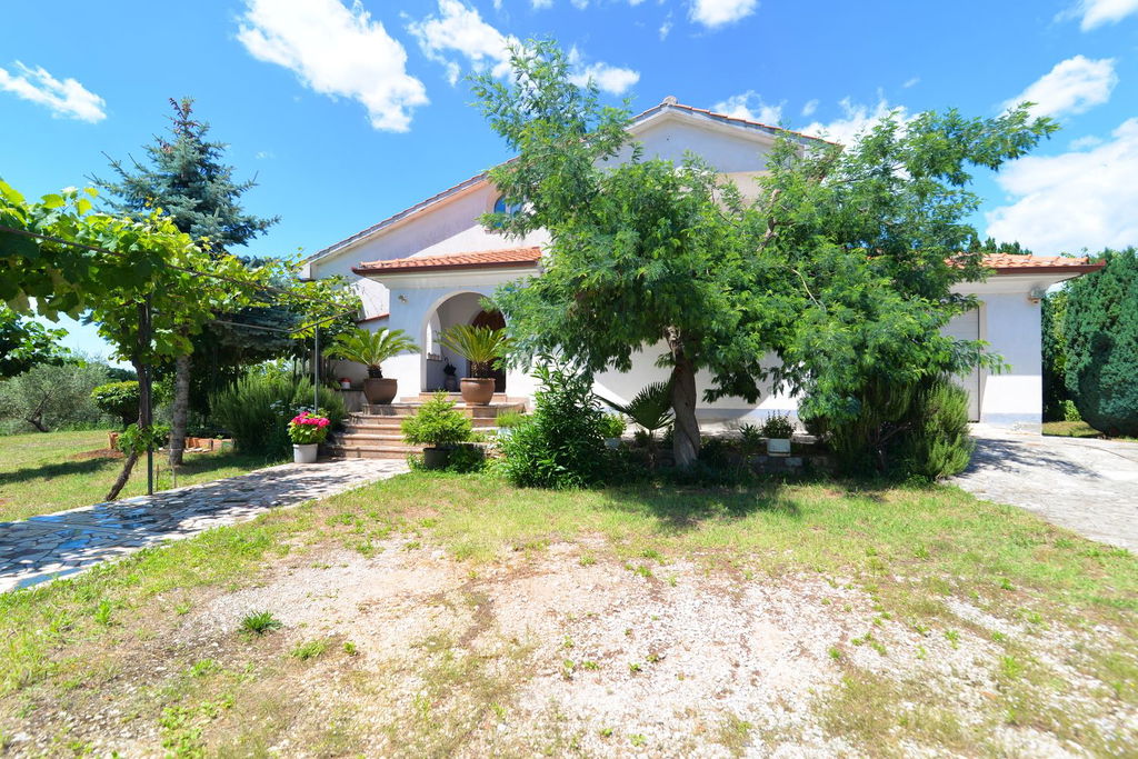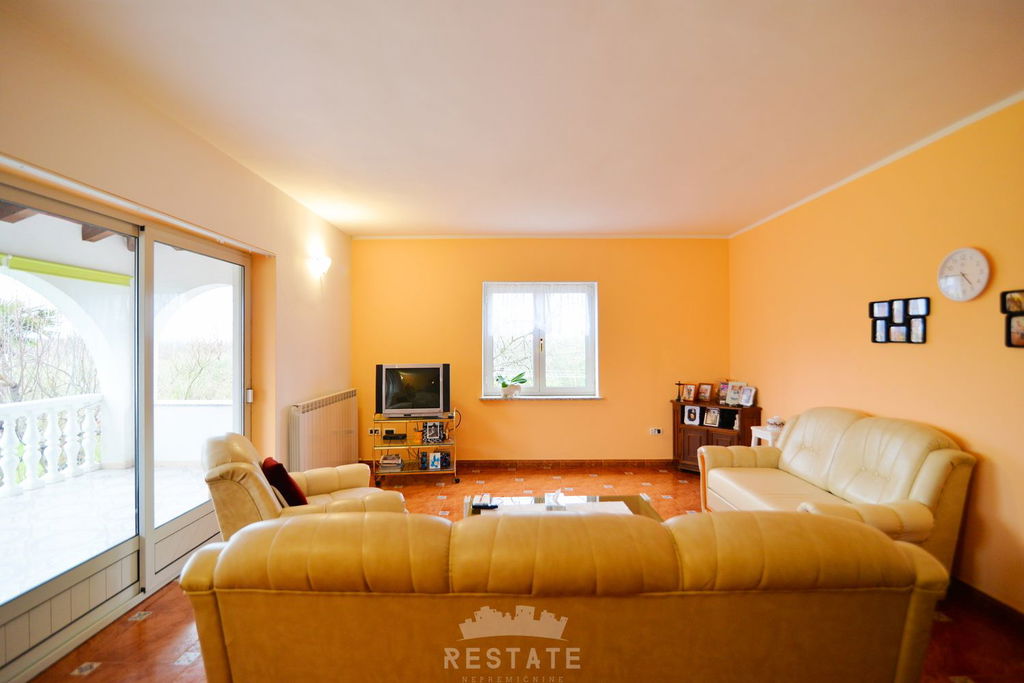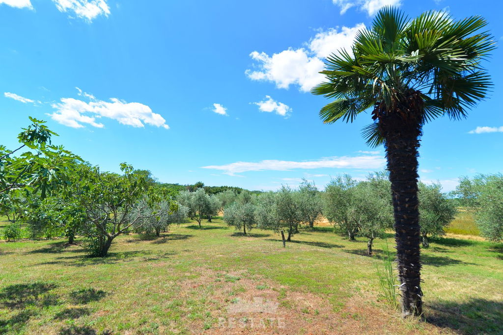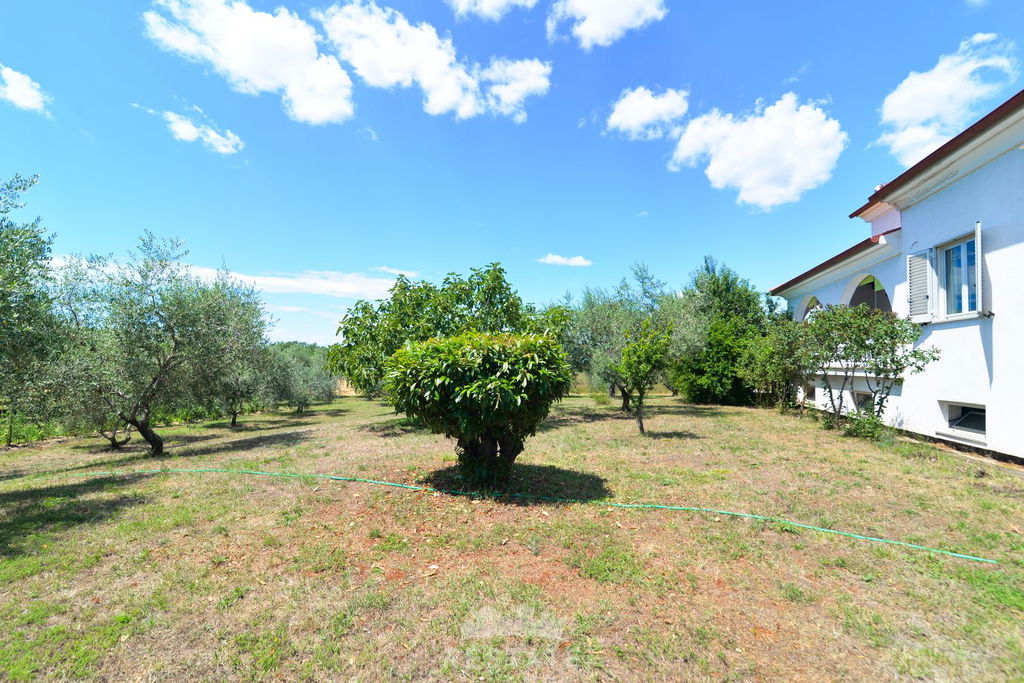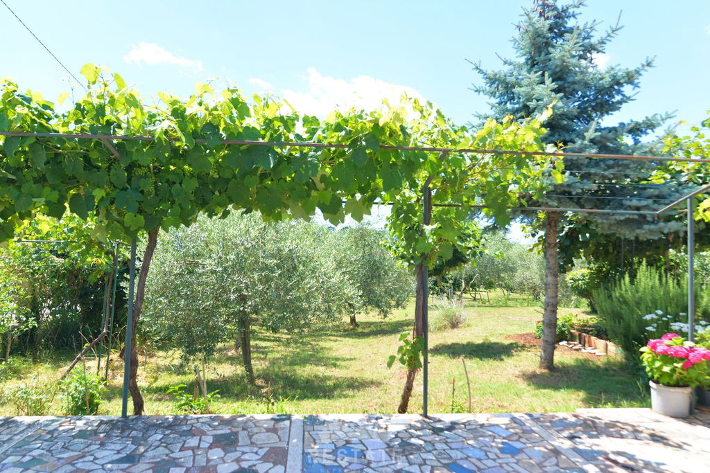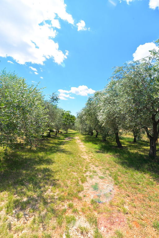 Na pola puta između Buja i Umaga, prodajemo veliku kuću s velikim zemljištem, maslinama i zasebnom garsonijerom. Kuća je sagrađena između 1997 i 2000 godine. U visokom prizemlju (VP) nalaze se kuhinja, dnevna soba, balkon, wc. U 1. među-etaži su dvije spavaće (2) sobe, spavaća soba s izlazom na balkon, kupatilo s kadom i tušem, u 2.među-etaži nalaze se predsoblje, dvije spavaće (2) sobe te kupatilo s tušem. Mansarda, koja je trenutačno još neizrađena rasprostire se kroz polovicu kuće. Podrum je ukopan po cijeloj površini kuće i ima visinu stropa od 4-5m, u kojem je smješteno i kupatilo s tušem te mnogi manji i veći pomoćni prostori.