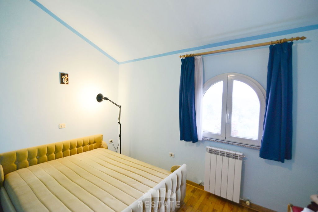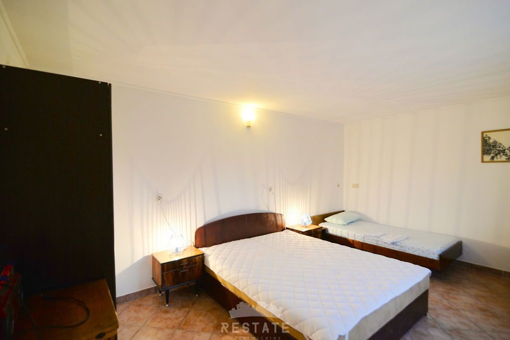 Garsonijera, koja se nalazi u prizemlju, ima veliku sobu, čajnu kuhinju, kupaonicu te vlastiti ulaz. Kuća je grijana sa središnjim centralnim sustavom na tvrda goriva - drva. Objekt je dobro održavan. Oprema po dogovoru.
