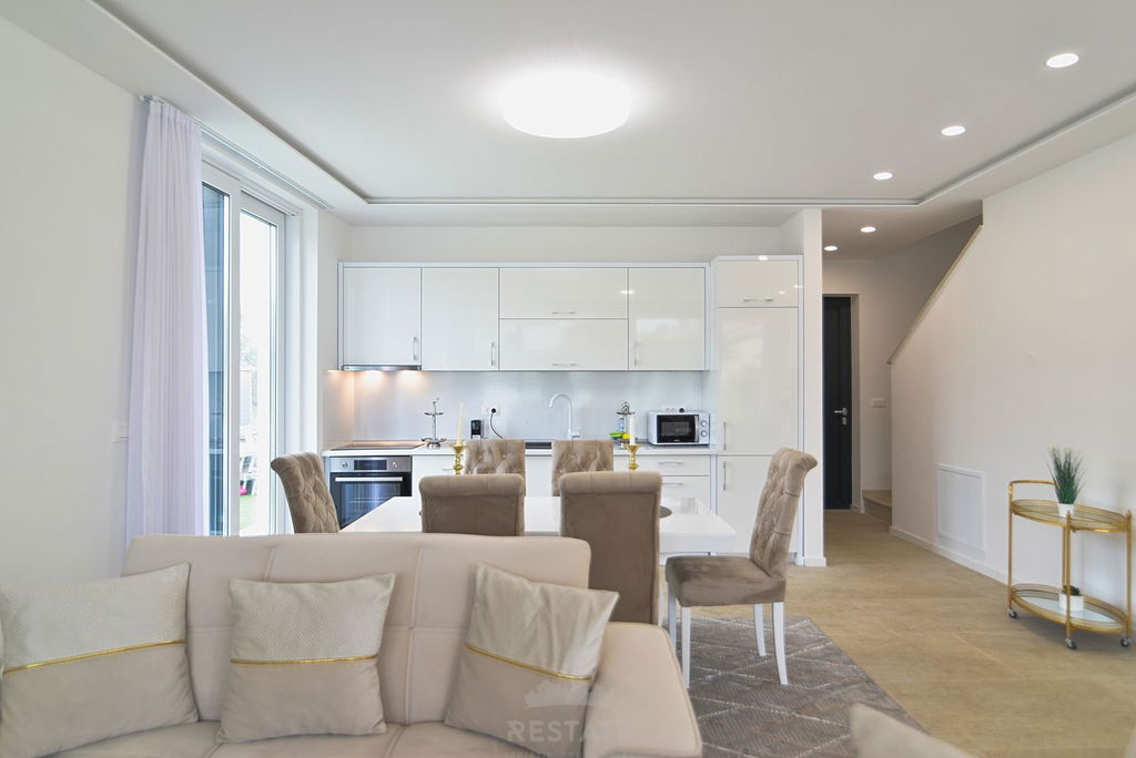 V kleti vsake hiše se nahaja (38 m2 neto): tehnična soba in pralnica, WC, prostor za wellness in savno.