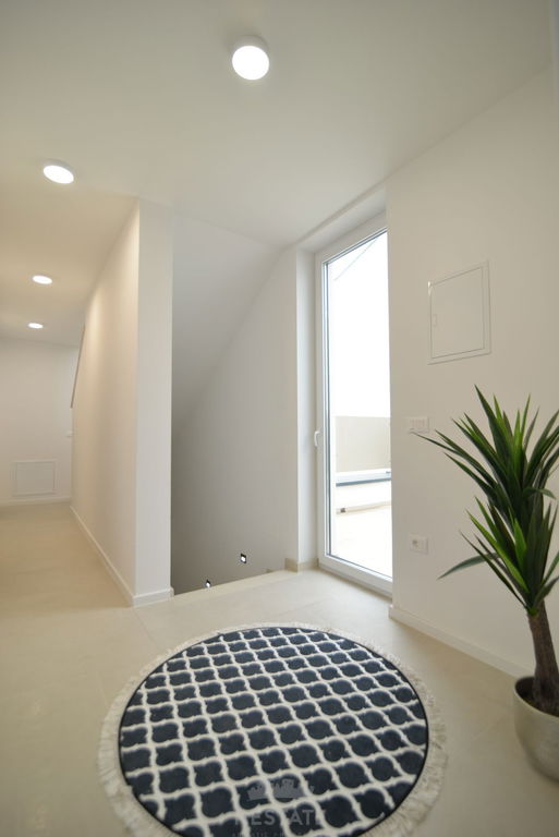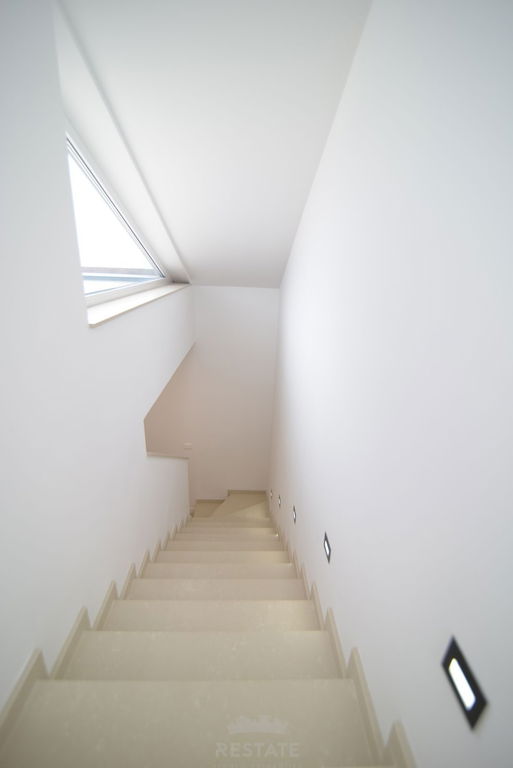 V nadstropju vsake hiše (65 m2 neto) se nahajajo: spalnica s kopalnico in balkonom, dve sobi, kopalnica; ter hodnik, iz katerega je izhod na skupno teraso.